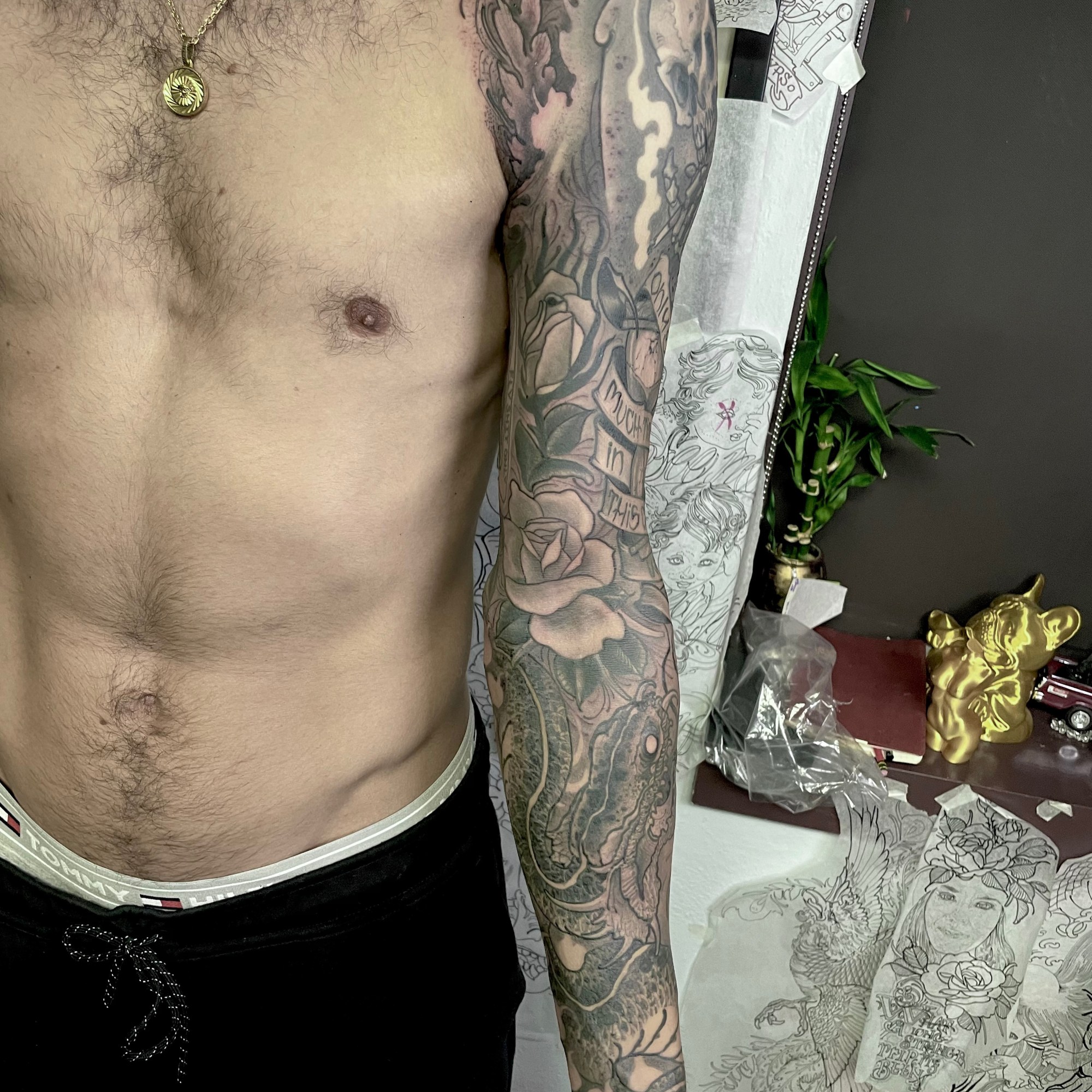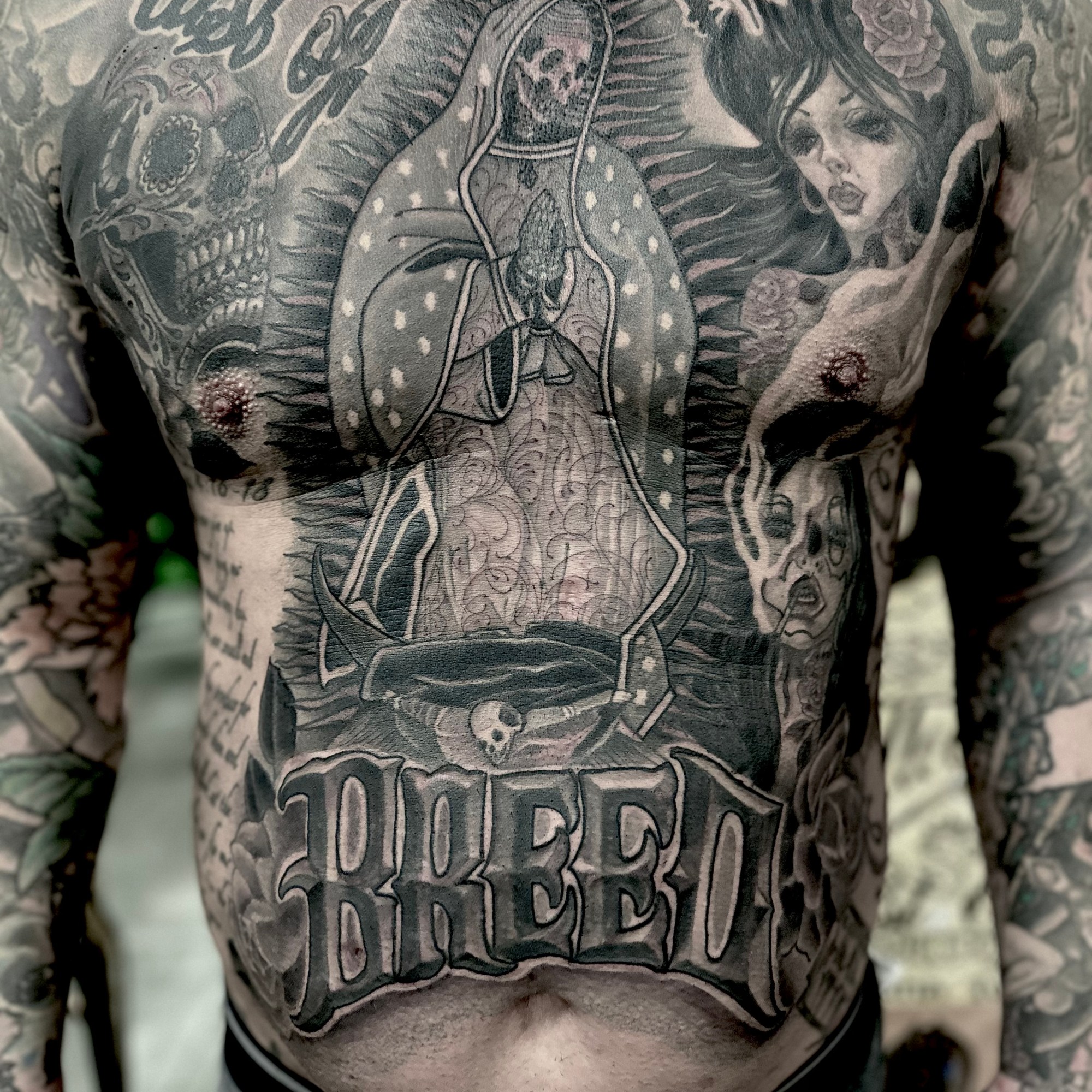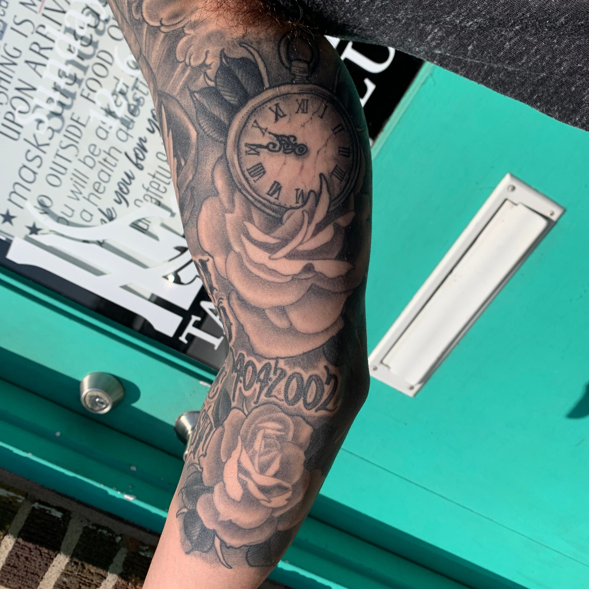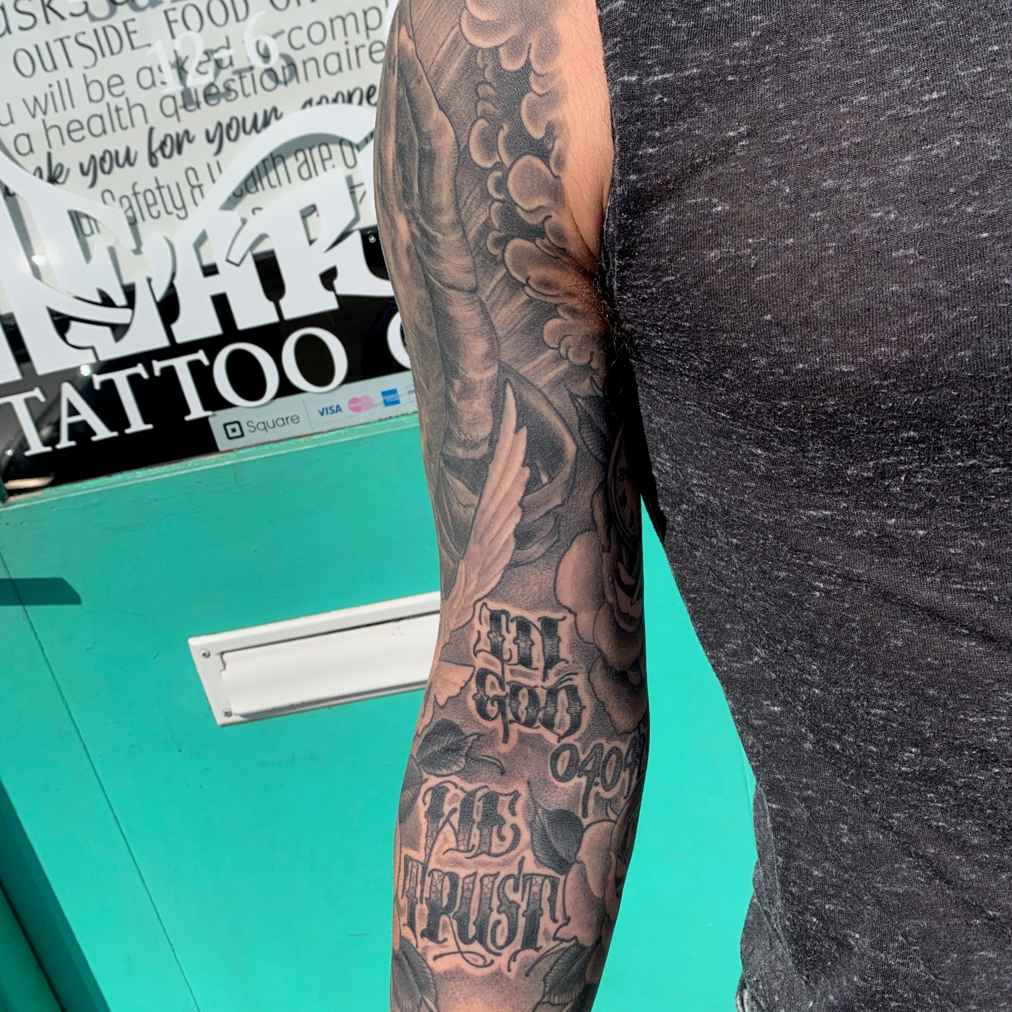 Lefty’s Black/Grey works take shape in both realism and illustration alike. He’s open to all forms including portraits, large-scale, and more basic outline styles as well.