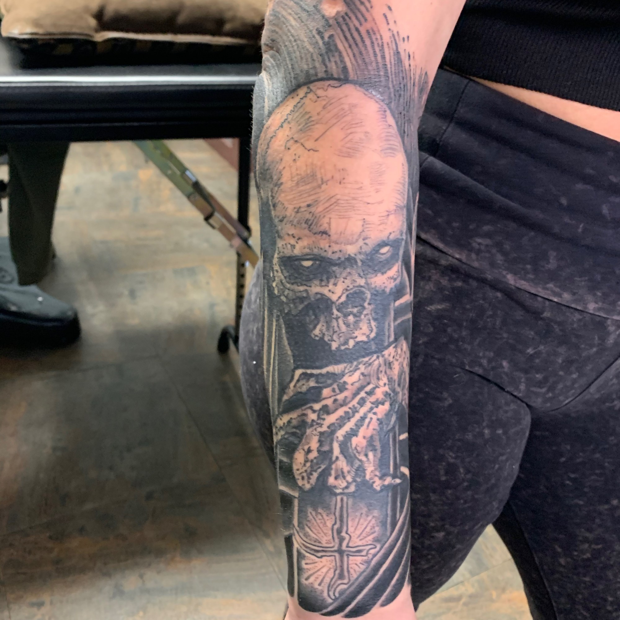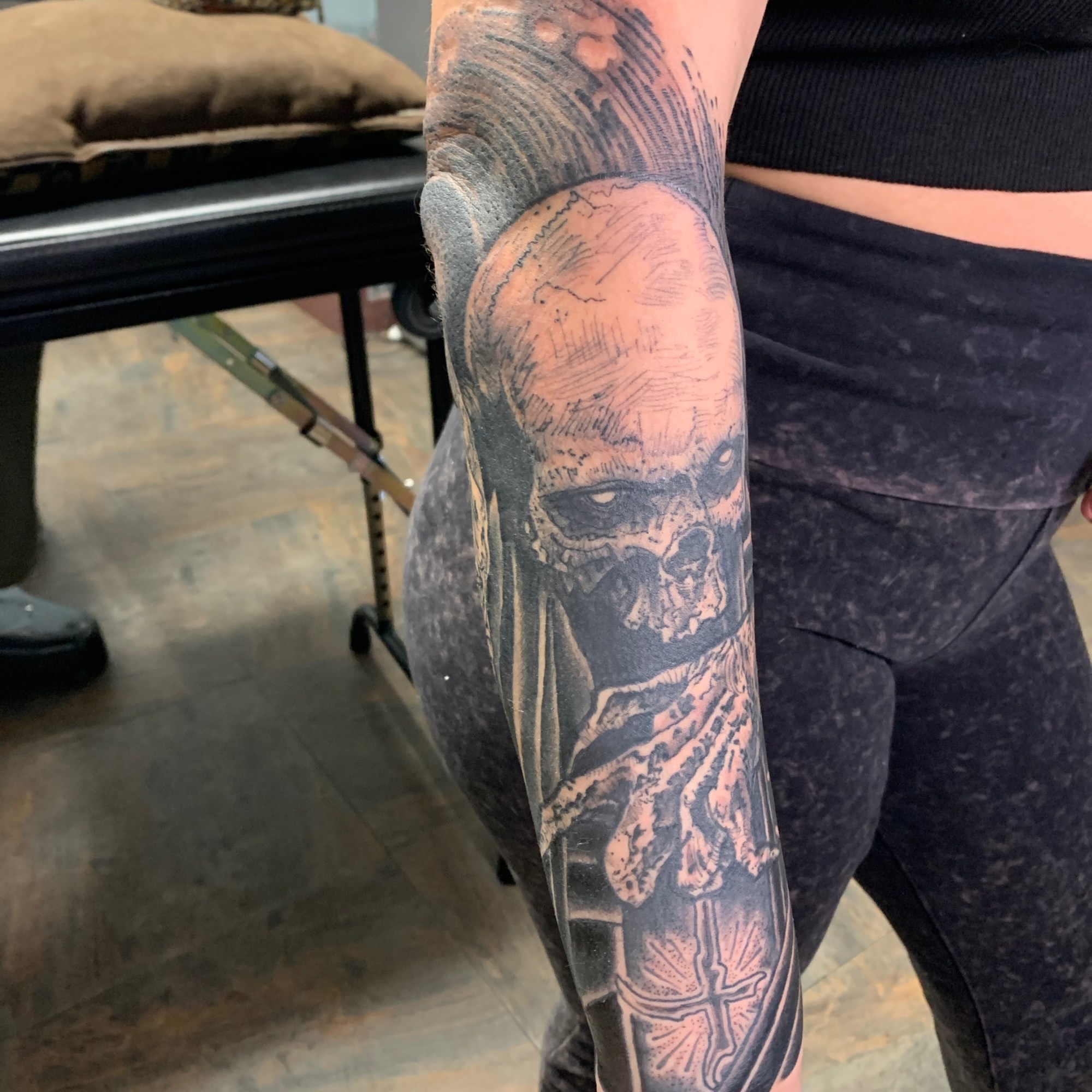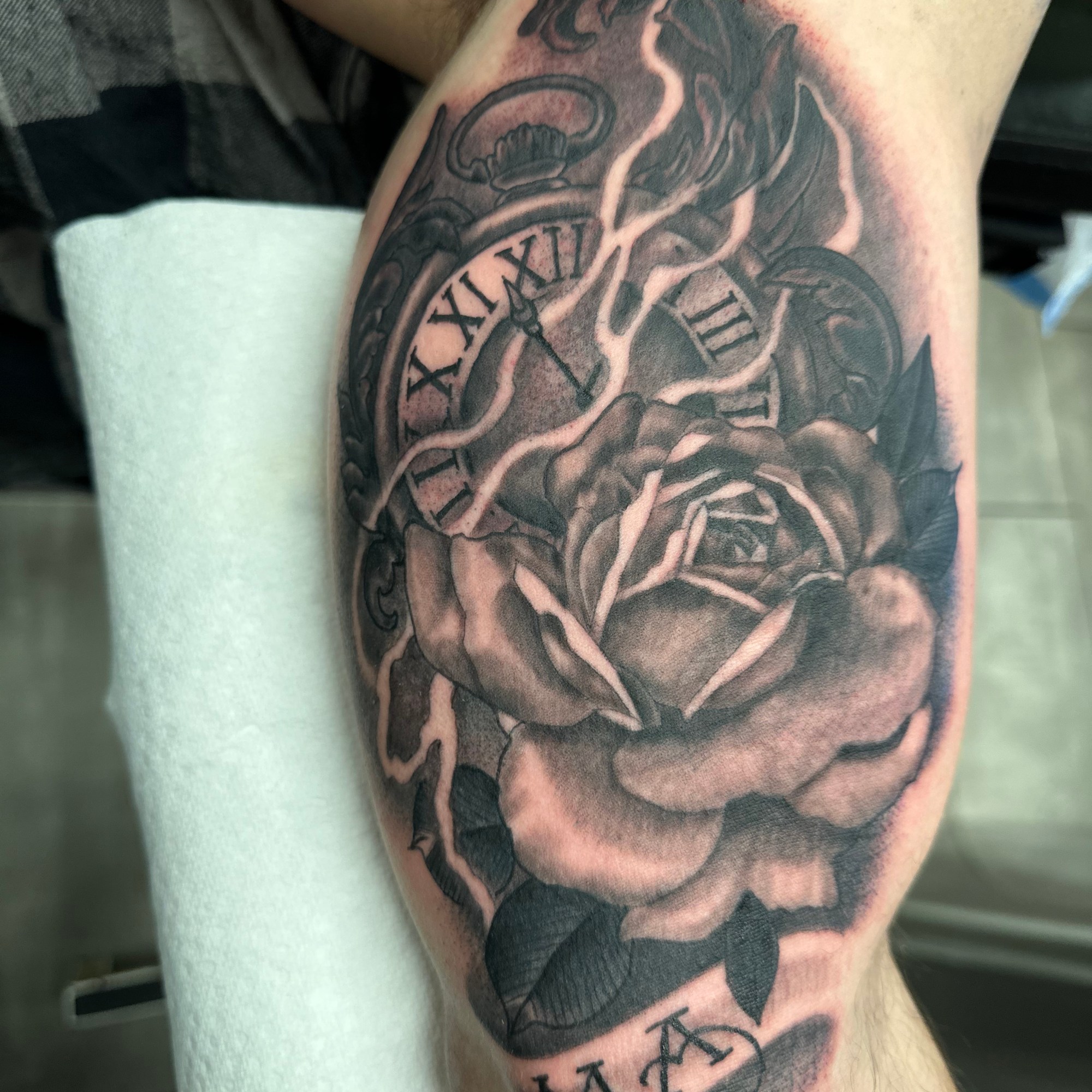 Lefty’s Black/Grey works take shape in both realism and illustration alike. He’s open to all forms including portraits, large-scale, and more basic outline styles as well.