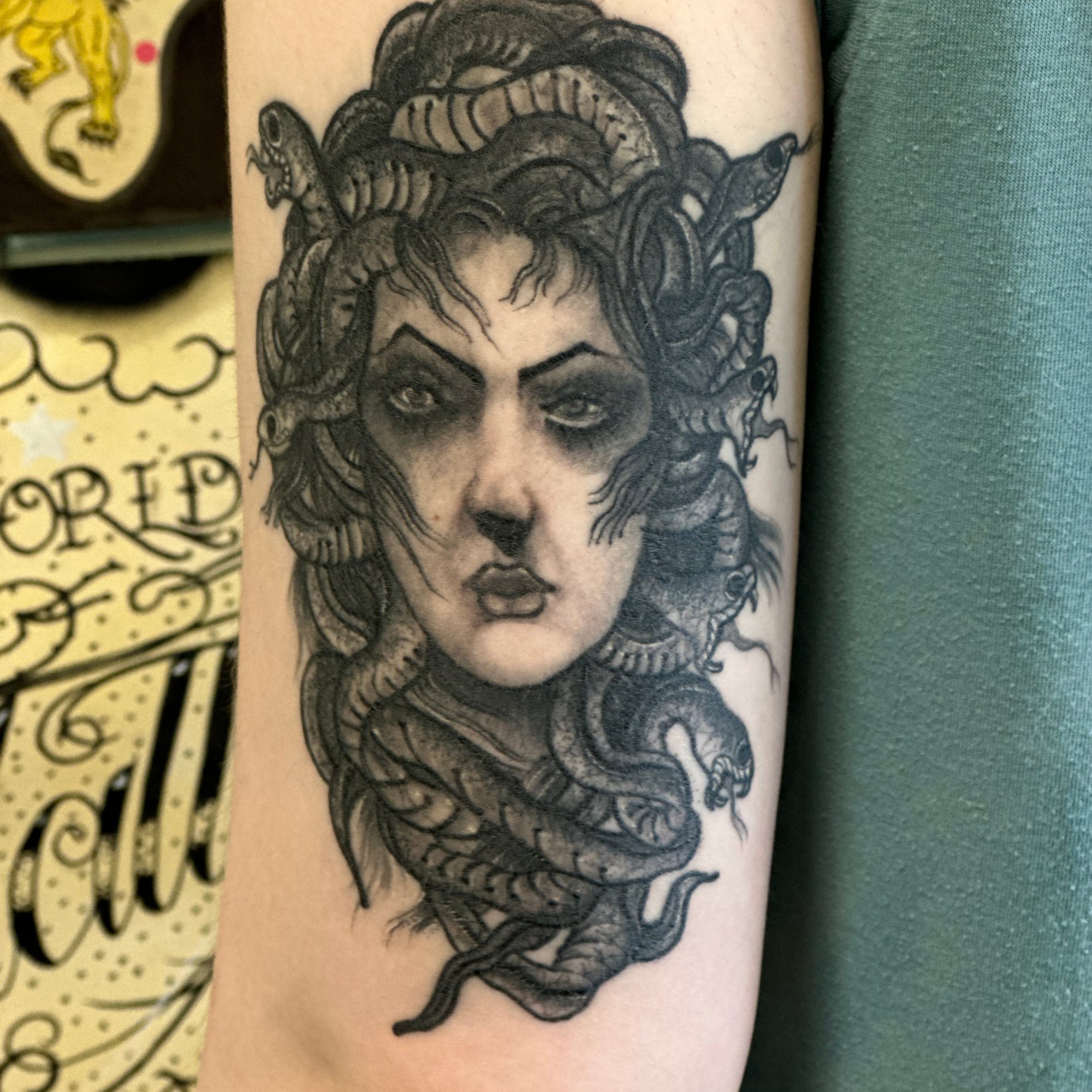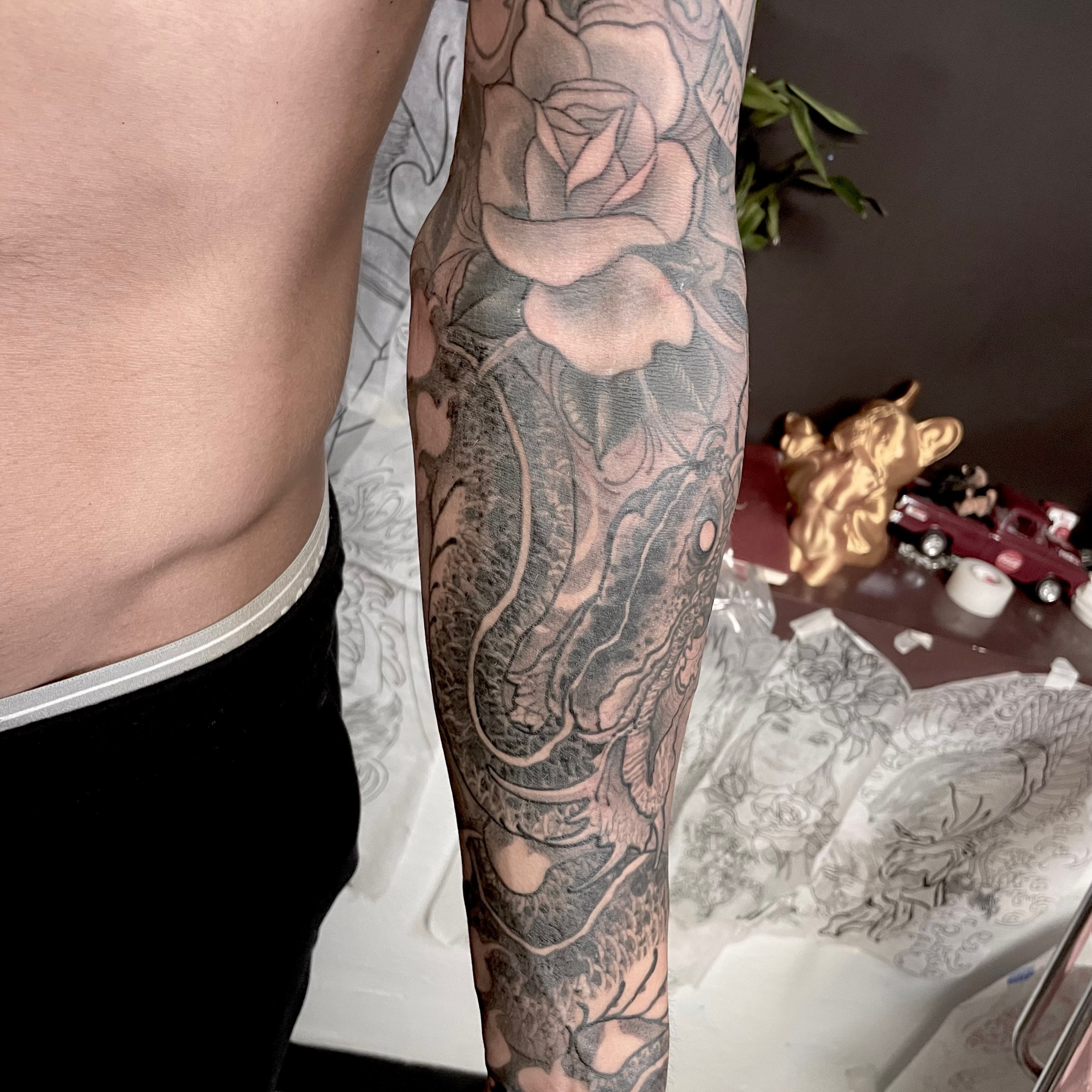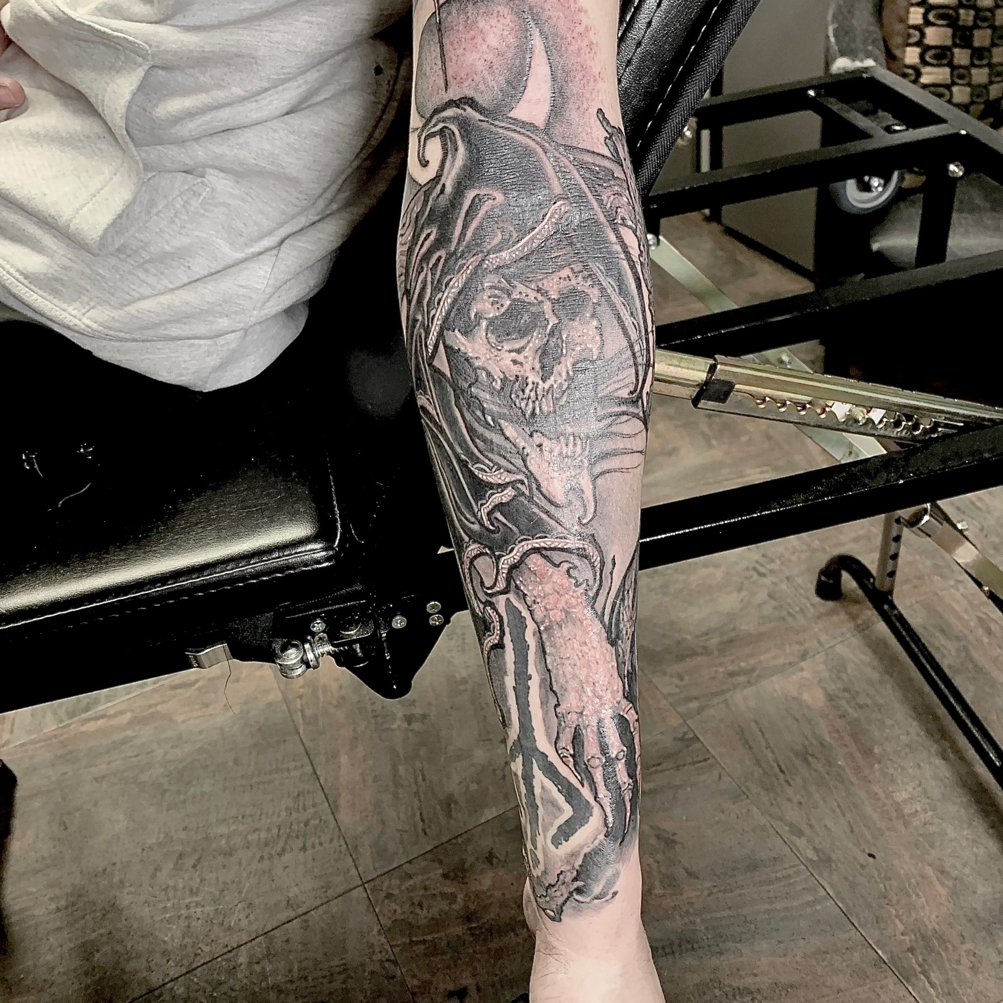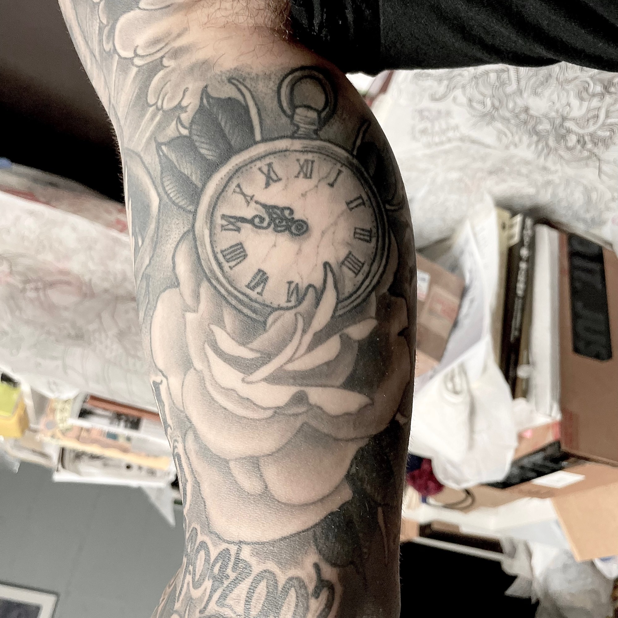 Lefty’s Black/Grey works take shape in both realism and illustration alike. He’s open to all forms including portraits, large-scale, and more basic outline styles as well.