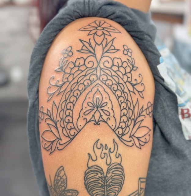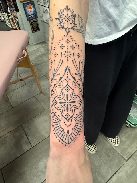 As a tattoo artist, I have been lucky enough to explore my love of botanical and ornamental artwork. I’ve been tattooing in Minnesota for 10 years and am constantly taking on challenges that test my ability and skill. Having the capability to create art through tattoos has been a great privilege. My clients have given me the support and direction that I needed to develop my love of illustrative, ornamental, and floral designs. I am so grateful for the continuous support of my clients and family.